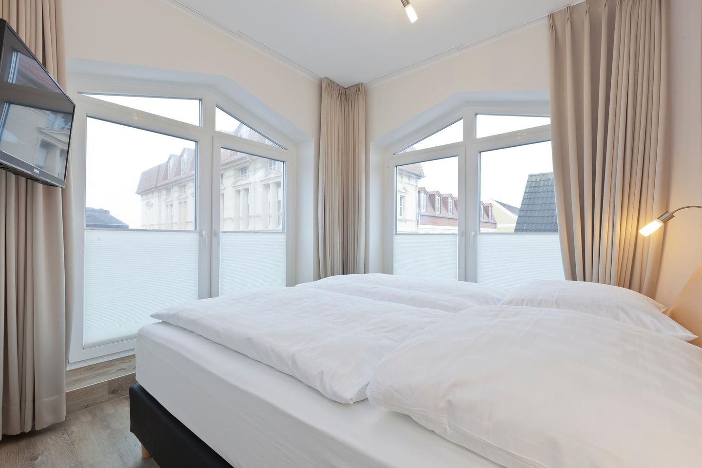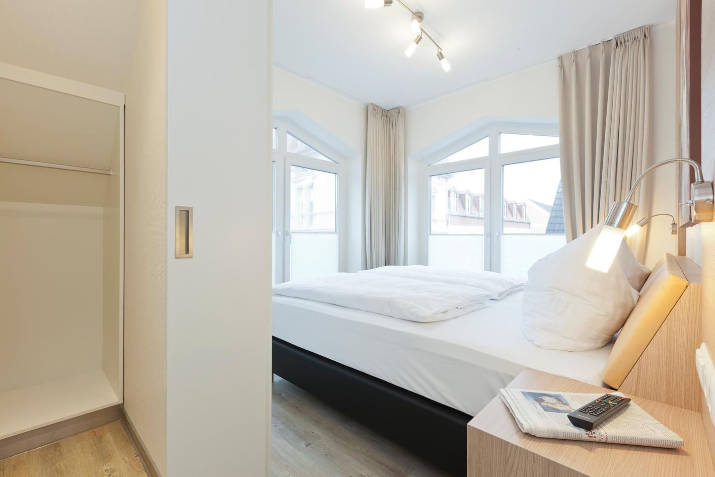 Die Wohnung 7 ist modern und komfortabel eingerichtet und bietet mit zwei Schlafzimmern ausreichend Platz für bis zu vier Personen. Jedes Schlafzimmer ist mit einem Doppelbett ausgestattet. Das Wohnzimmer ist mit einer Sitzecke eingerichtet. Die angrenzende Küchenecke ist voll ausgestattet und bietet zudem einen Essbereich. Die Wohnung verfügt über einen Balkon. Waschmaschine und Wäschetrockner befinden sich im Haus und stehen (für die gemeinschaftliche Nutzung gegen Münzeinwurf) zur Verfügung, was besonders für längere Aufenthalte von Vorteil ist. Hunde sind in dieser Ferienwohnung nicht erlaubt.