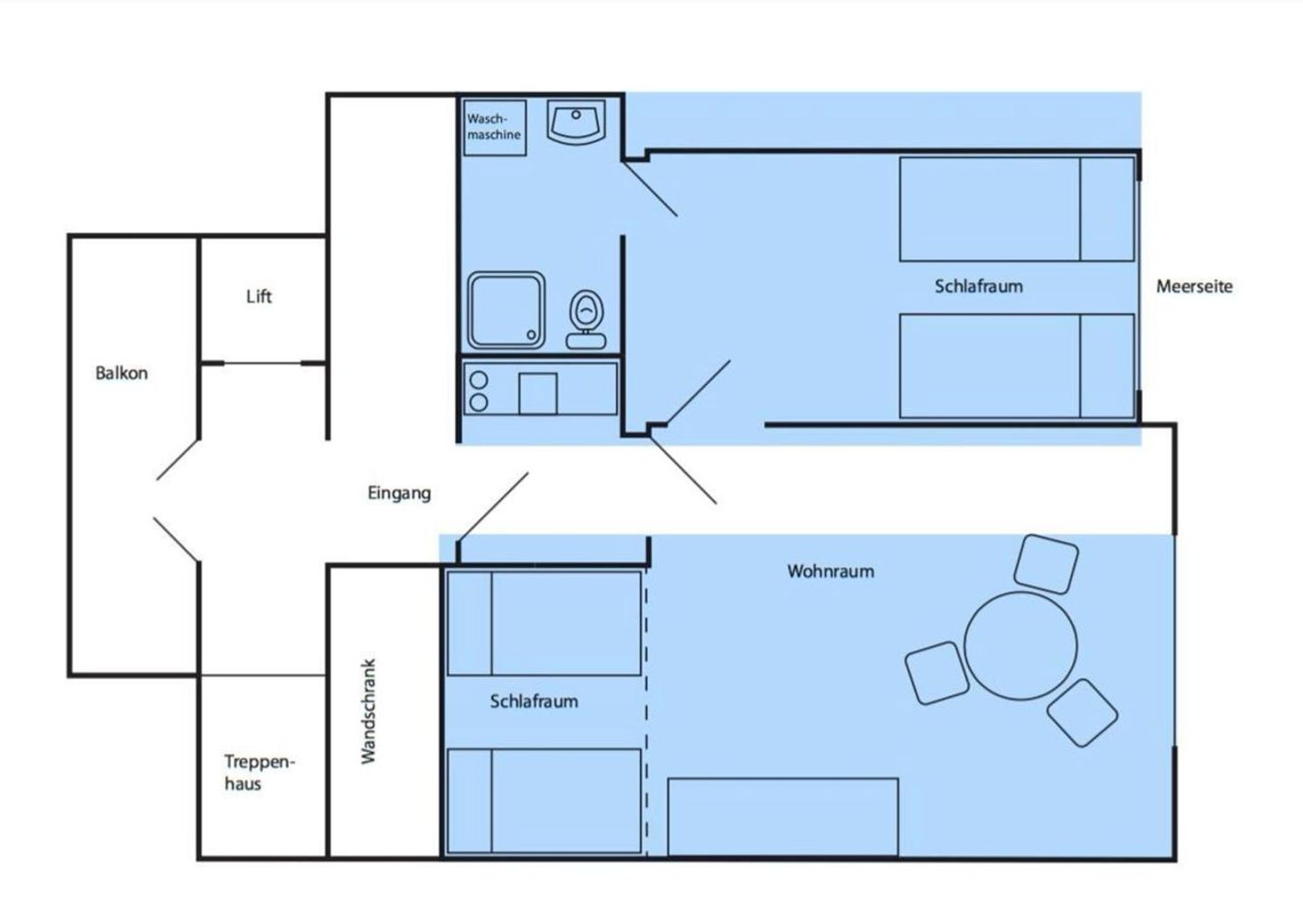 Das Apartment im ersten Stock (erreichbar per Aufzug) besticht durch seinen direkten Blick auf die unendliche Weite der Nordsee. Lassen Sie sich von dem atemberaubenden Panorama verzaubern und genießen Sie die Ruhe und Gelassenheit, die das Meer ausstrahlt.