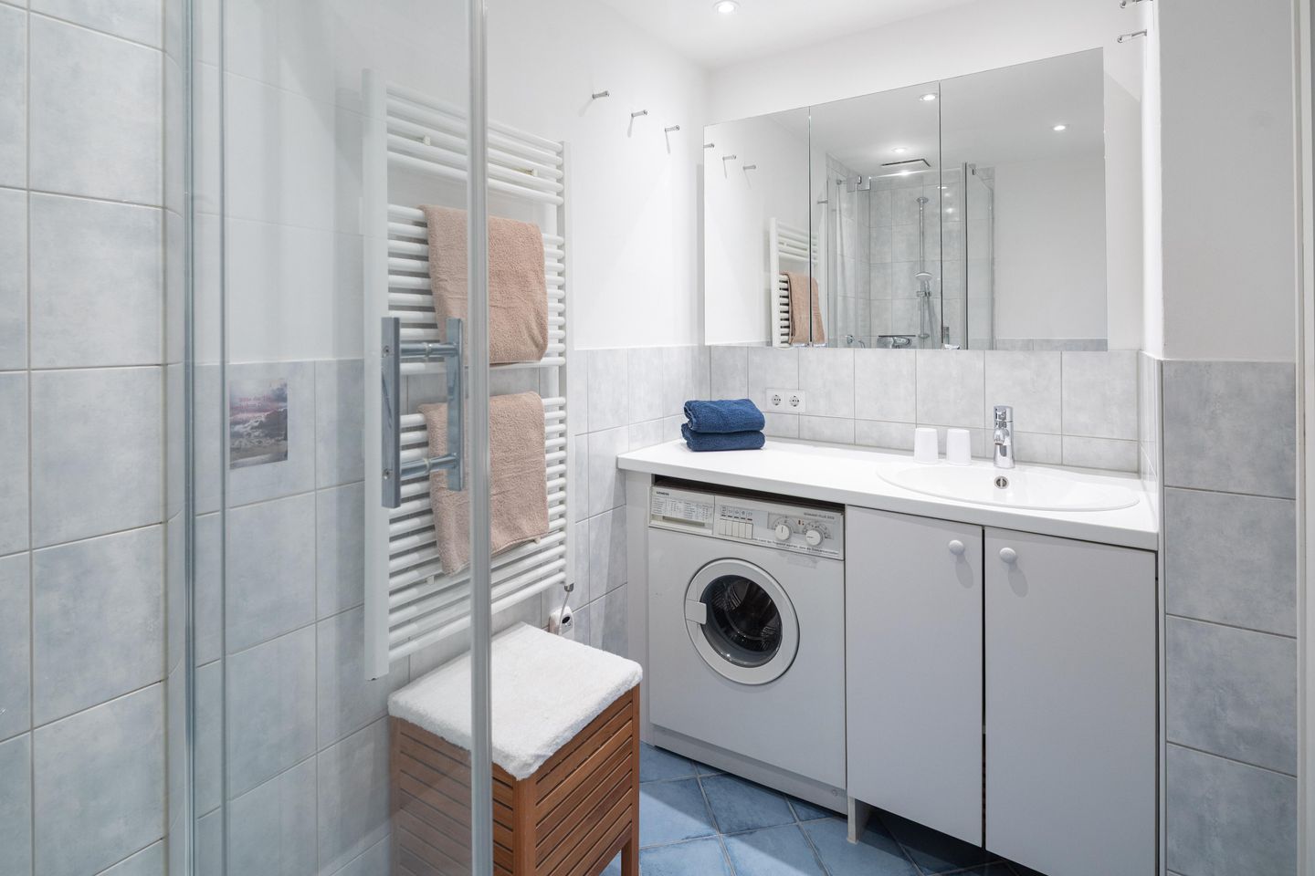 Die Wohnung wurde kürzlich komplett modernisiert und hochwertig möbliert. Sie verfügt über ein Wohn- und Schlafzimmer, das mit einer komfortablen Ausziehcouch ausgestattet ist. Die Couch bietet mit einer Breite von 1,40 Metern genügend Platz für entspannte Abende oder eine erholsame Nacht. Ein 20 Quadratmeter großer Balkon zur Hofseite bietet ausreichend Platz für ein Frühstück in der Sonne.