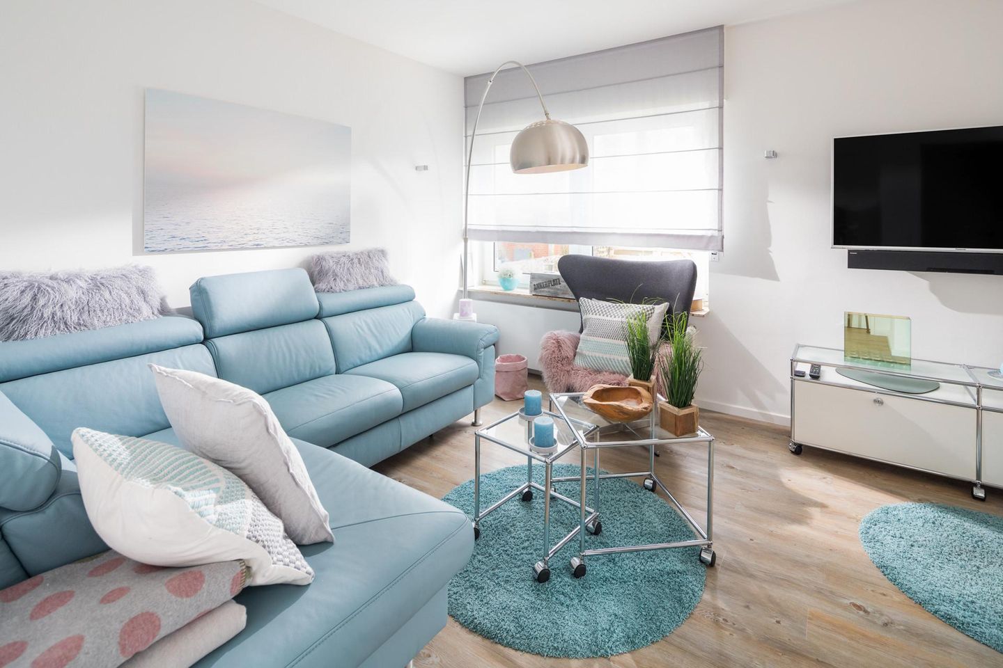 Bei der Innenausstattung wurde auf ein helles Design geachtet. Die 2-Zimmer-Wohnung wurde im Schlafzimmer mit einem Doppelbett (180m x 200m) ausgestattet. Das kleine Badezimmer verfügt über eine Dusche und einen Haartrockner. In der vollausgestatteten Küchenzeile ist eine Spülmaschine vorhanden.